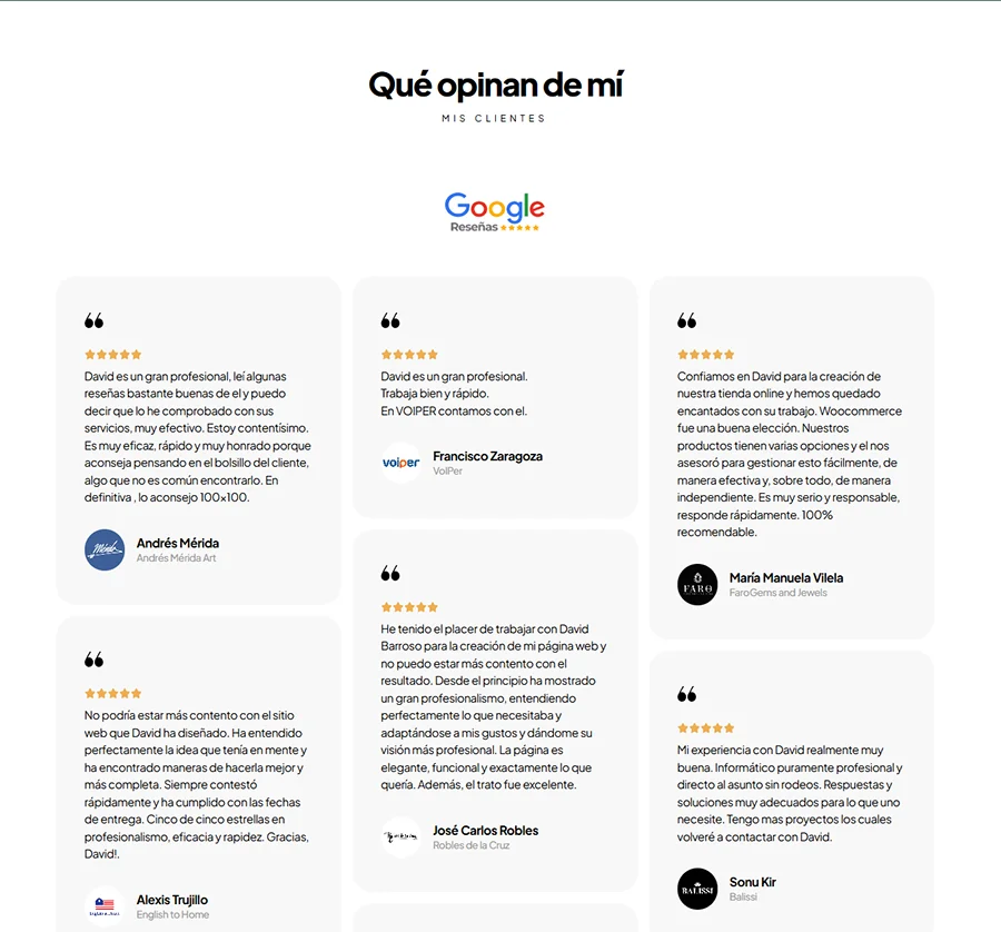 Incluye testimonios reales de clientes, logos de empresas con las que has trabajado o certificaciones relevantes. Estos elementos son señales que tranquilizan al visitante y refuerzan tu autoridad.